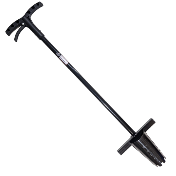 Lift the soil and squeeze the trigger to open the spades, releasing dirt.