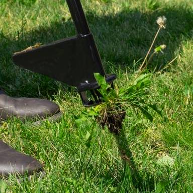 Position the tines of your Weed Hound™ directly above the weed and step on the pedal.