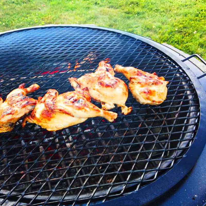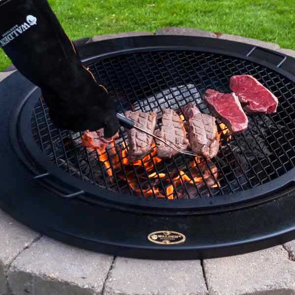 After use, remember to clean and occasionally re-season your fire pit grilling grate. Just like a good old cast iron skillet, heated steel wants a light coat of oil after a few uses to keep your BBQ grilling grate primed for your next grilled masterpiece.